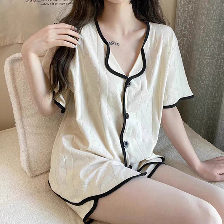 Piyama Wanita Gelato Pique Korean Style Motif Garis Elegan Set 2pcs Nyaman Tipis Bisa Dipakai Keluar