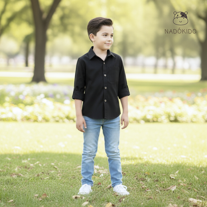 Nadokido Eska Oversize Shirt Kids / Baju Kemeja Oversize Lengan Panjang Atasan Anak Unisex Cewe Cowo Perempuan Laki-Laki ( 6 Bulan - 10 Tahun )