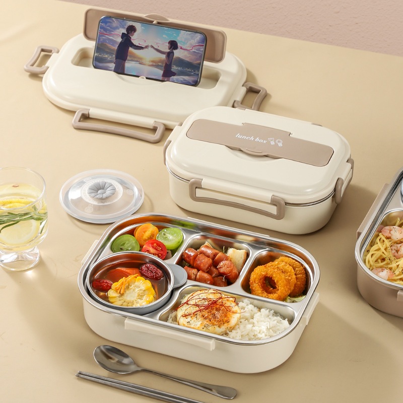 Lunch Box Kotak Makan 4 Grid / 5 Grid SUS 304 Stainless Steel Lunch Box Stainless Tahan Panas Dan Anti Tumpah Murah Grat