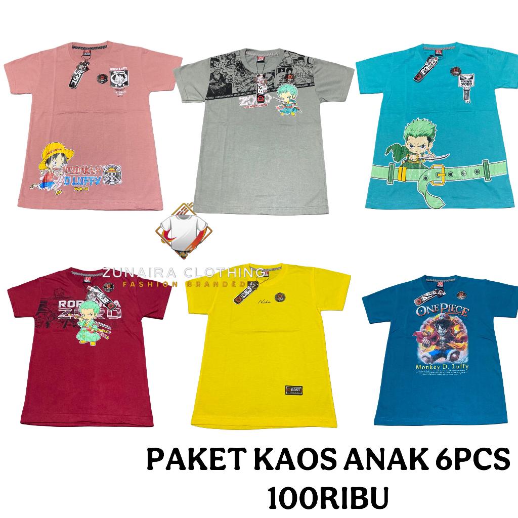 Paket 5Pcs Kaos Anak Terbaru Baju Anak Unisex Motif Keren Kaos Anak Usia 6-11 Tahun Bahan Adem