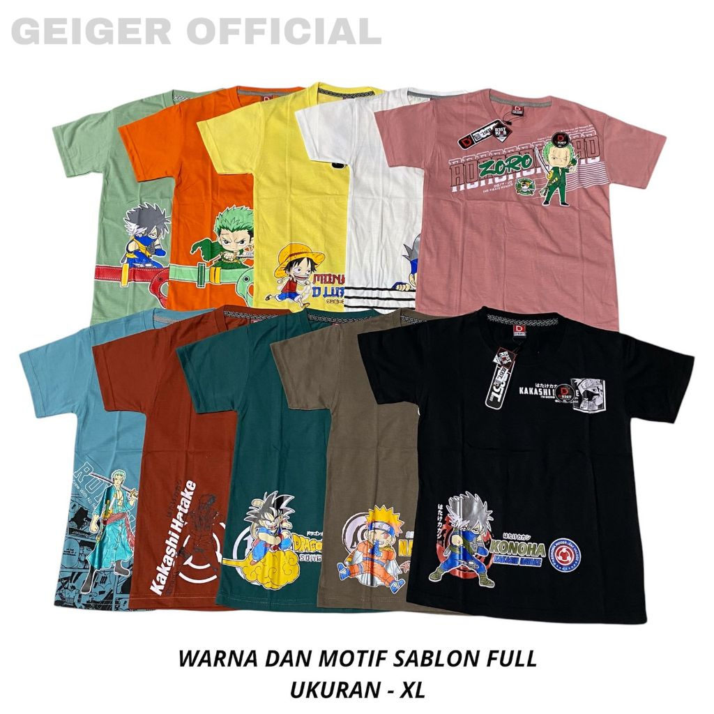 Paket 6 - Kaos Anak (3-12 Th) Semi Katun 24S Sablon Plastisol Pasta Emboss Dtf Unisex L Geiger