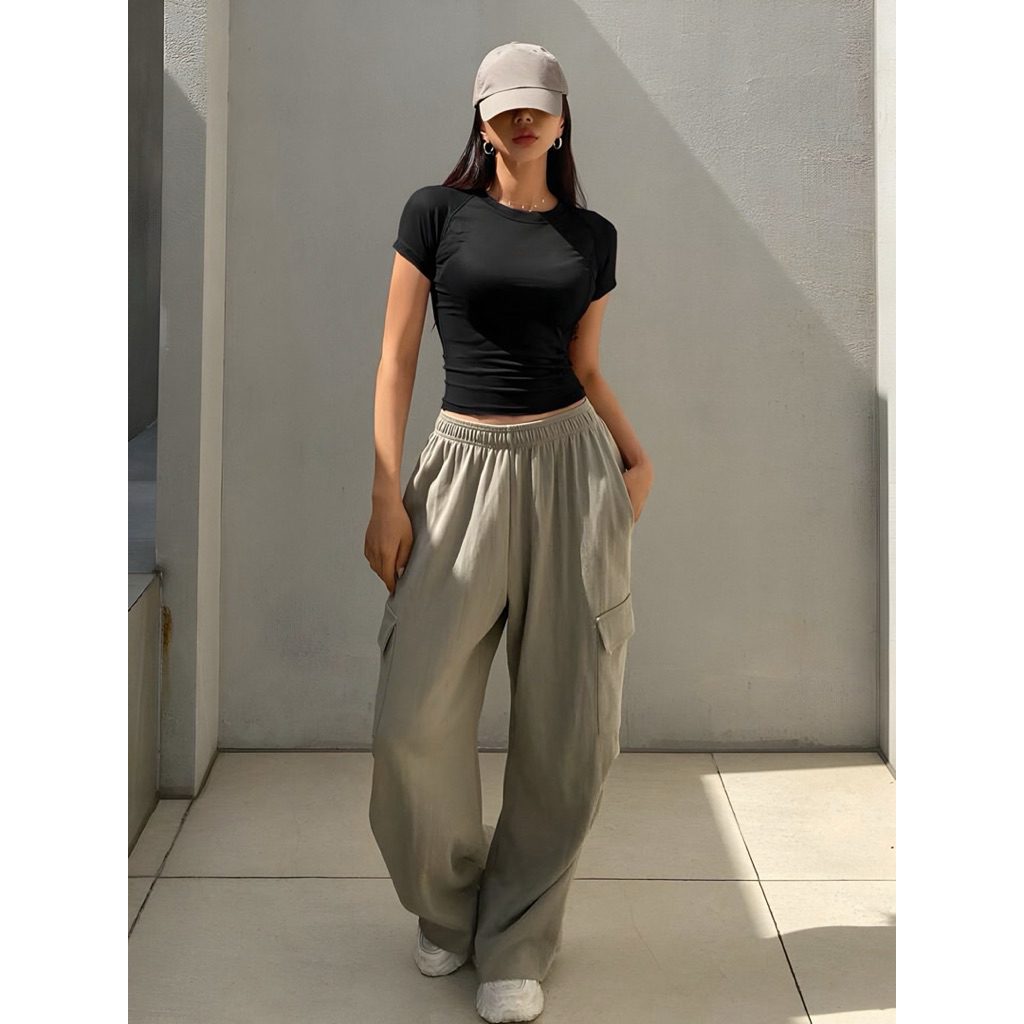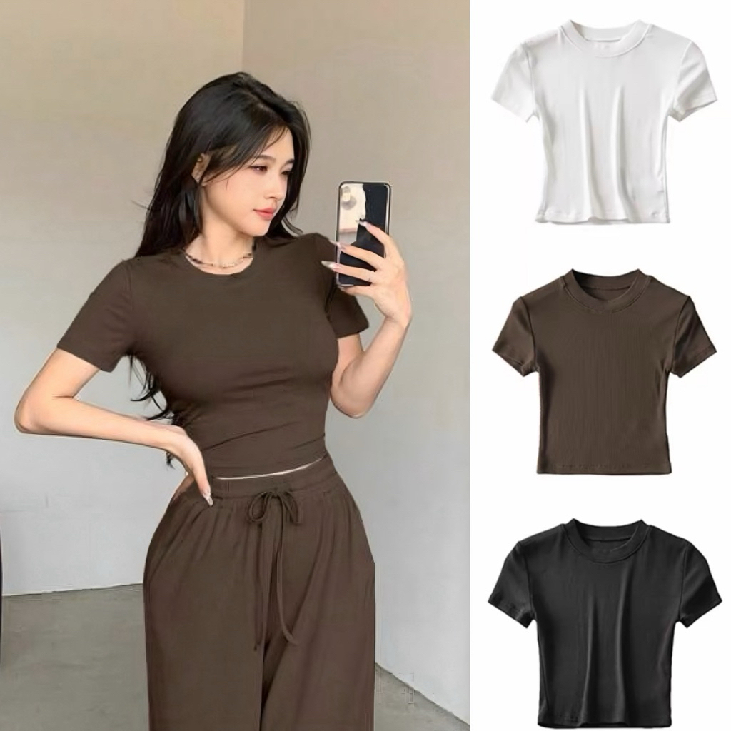 Crop Top - Atasan Fitted Wanita - Atasan Bodyfit Korean Style CROP Baju Wanita Crop Top Korea Crop Tee Murah Gratis