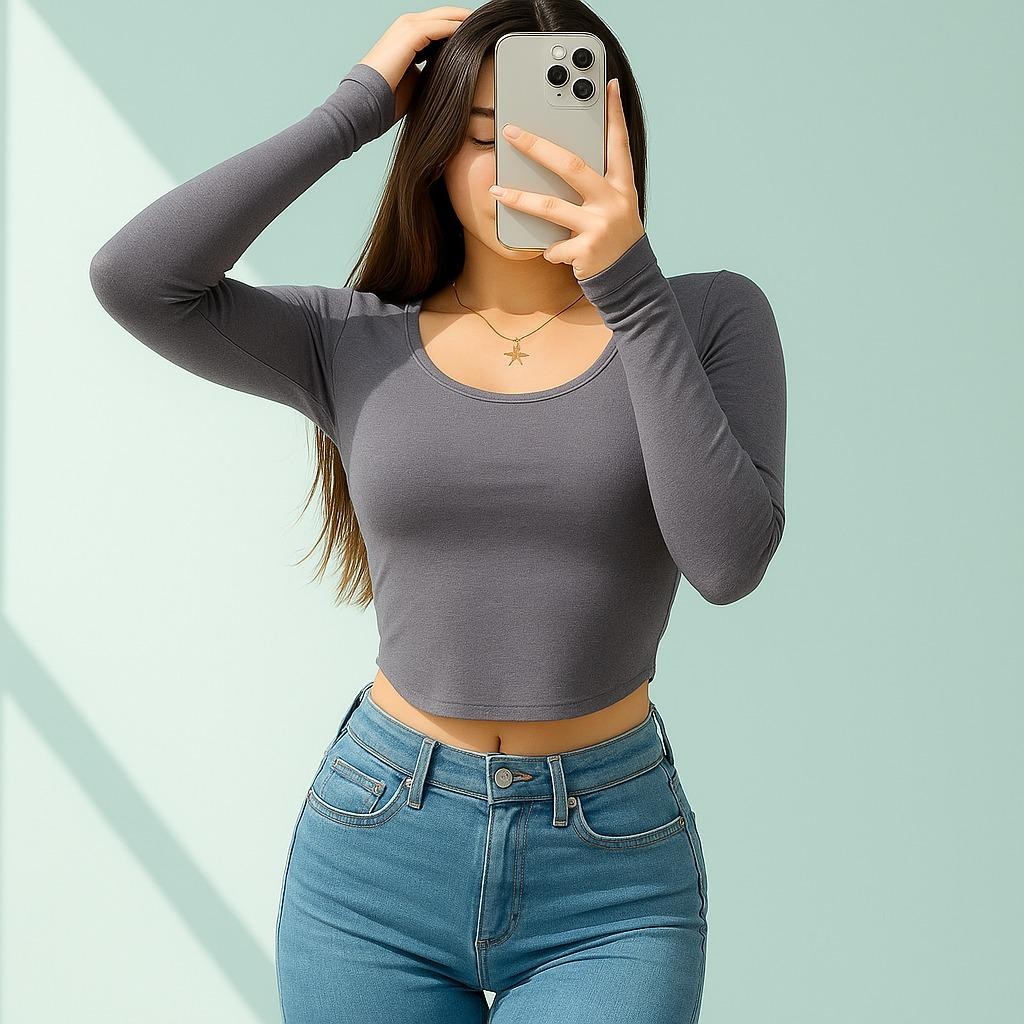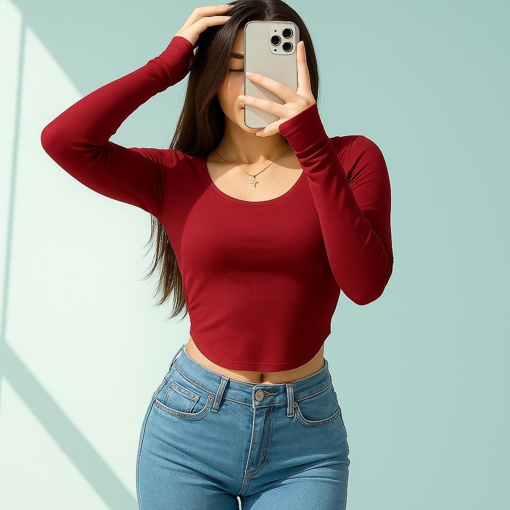 Najwa - Atasan Felicia Basic Top / Kaos Wanita Lengan Panjang / Long Sleeve Crop Top / Korean Basic Look (GH) Murah Grat