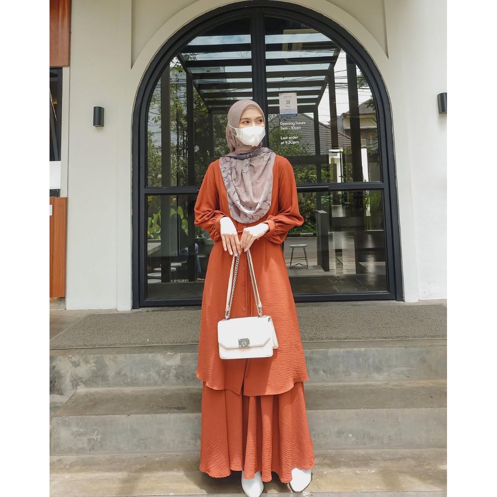 Naya Set / Size S M L XL / Stelan Satu Set Tunik Rok / Baju Atasan Stelan Rok / Stelan Wanita Fashion Muslim Terbaru / Stelan Crinkle Wanita