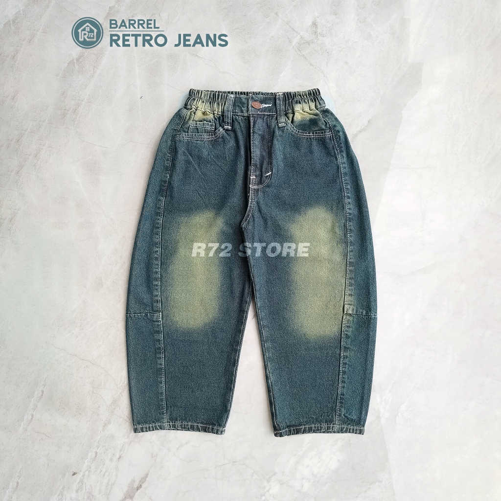 R72 Baggy Barrel Jeans - Celana Anak Unisex Balon Skena Usia 2 - 9 Tahun Soft Jeans Fashion Kids