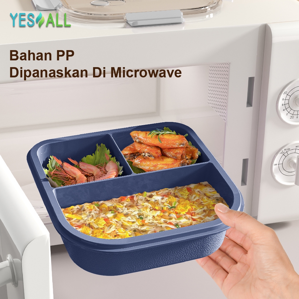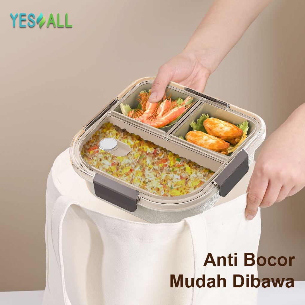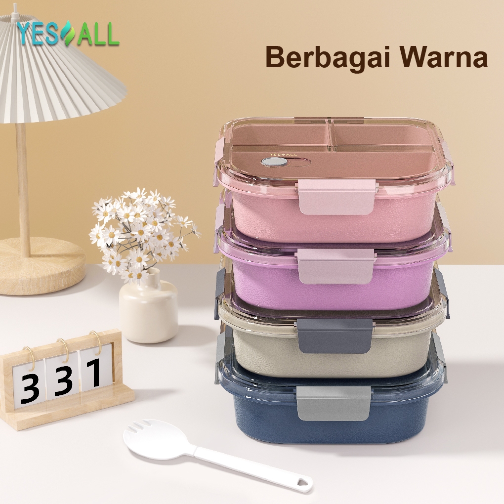 YESALL Anti Tumpah Lunch Box - Kotak Makan 3 Sekat Gratis Sendok Wadah Saos Tempat Bekal Anak Sekolah Kotak Bekal Tahan