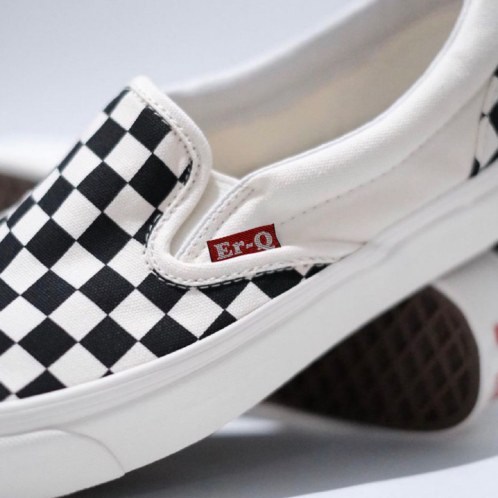 Er-Q - SEPATU SLIP ON CHECKERBOARD OG BLACK WHITE PRIA WANITA SEPATU MOTIF CATUR SLIP ON CASUAL TREND CEWEK COWOK Murah