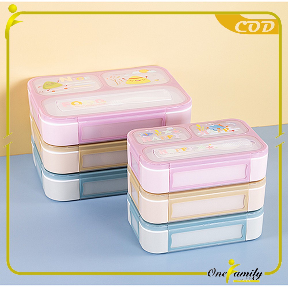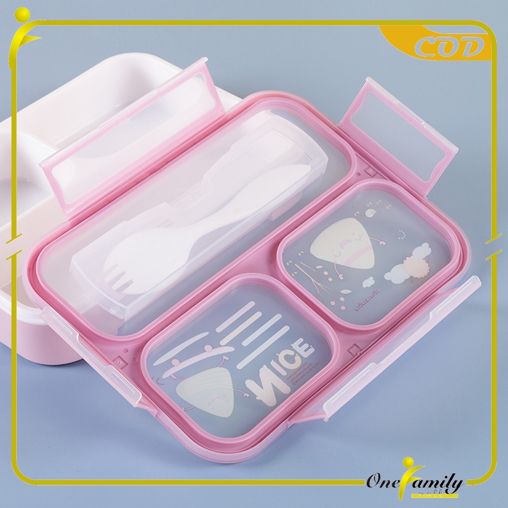 ONE-C448 C449 Lunch Box Set Anak 3 Sekat BPA FREE Karakter Dengan Sendok Tempat Makan Anak Kotak Bekal Anak Motif Lucu M