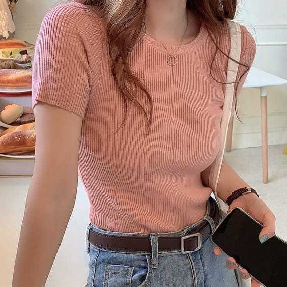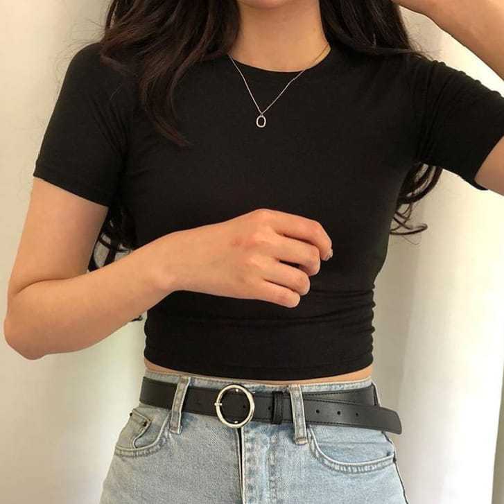 Kaos Polos Crop Top Wanita Model Korean Style Terbaru Basic Top Murah Gratis Ongkir