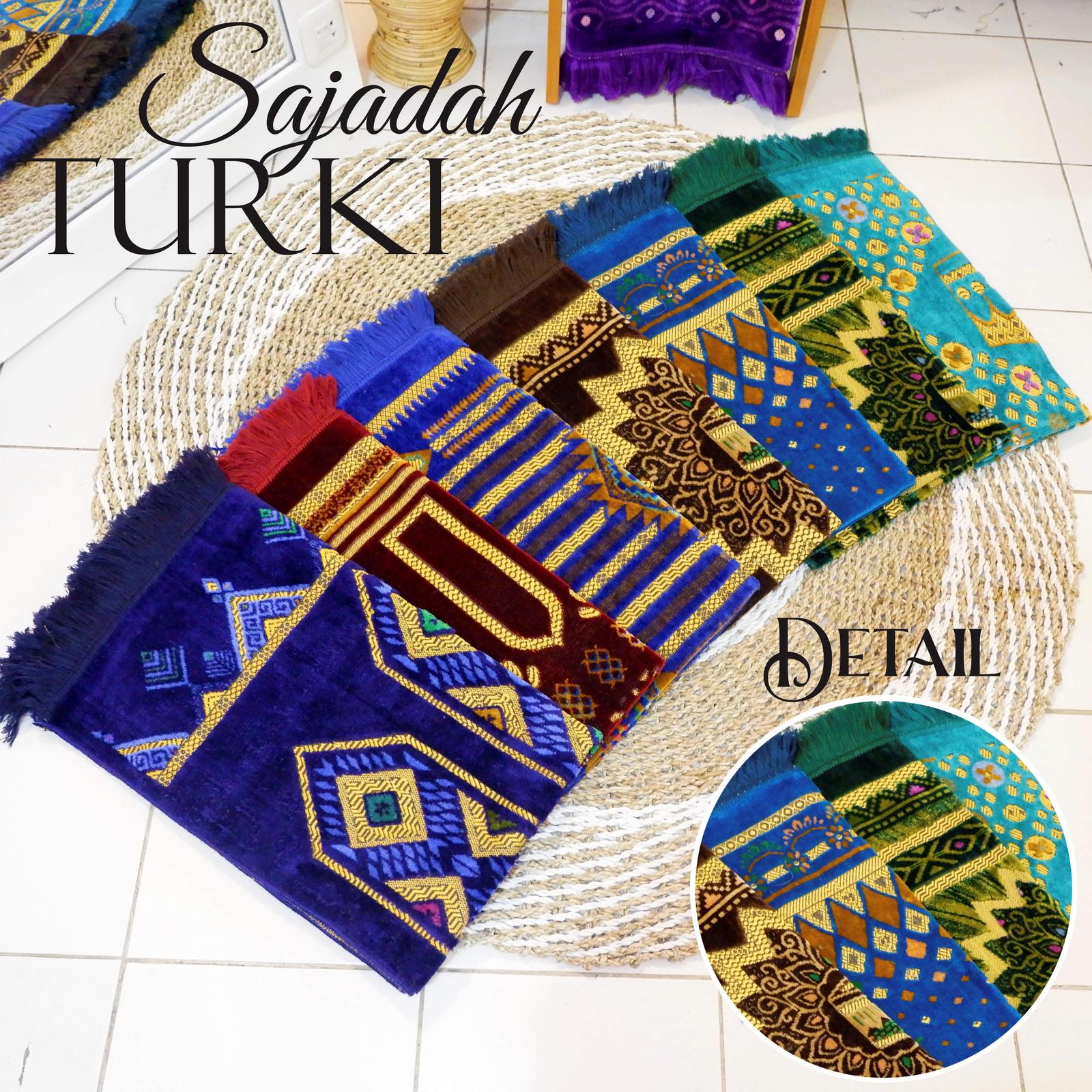 Sajadah Turki Super Spigel Turkey Motif Multicolor Bulu Lembut Ukuran besar 70x110 Muslim Haji Umroh