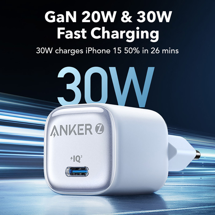 Anker Zolo GaN 20W 30W Adaptor Kepala Charger for iPhone 15 Samsung Type C PD PPS Fast Charging A2698 A2699 B2698 B2699