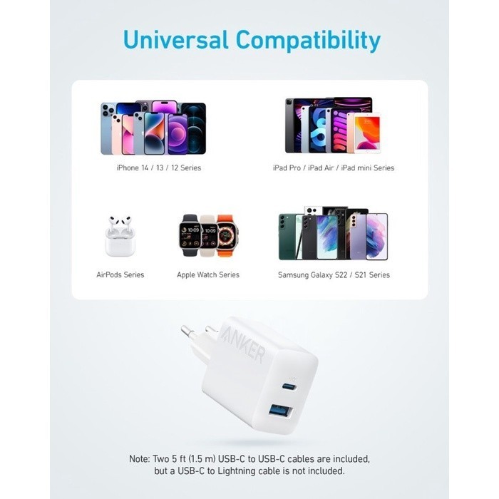 Anker Powerport Charger 20W 18W Dual Port USB Type A & C - A2348