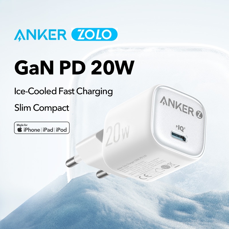Anker 20W Wall Charger Adaptor GaN USB Type C Lightning MFi Fast Charging PD for iPhone 17 16 15 14 13 Samsung Ice-Coole
