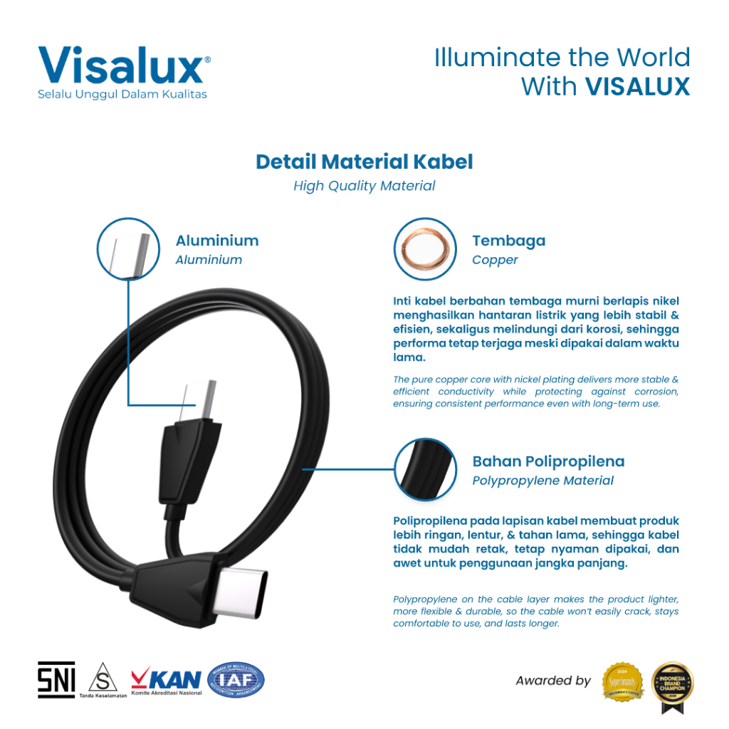 Visalux Mega Charger Adaptor + Cable 45W Turbo Fast Charging Dual Port - Kepala Charger Kabel Type C (VKA8950-Mega)