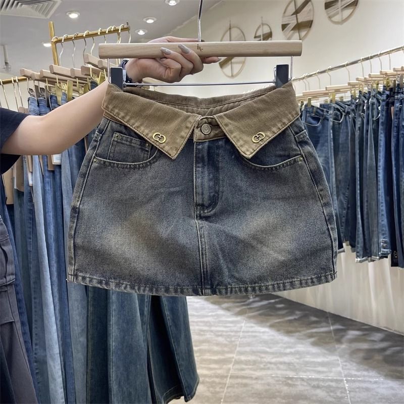 DENIM MINI SKIRT MOTIF PINGGANG LIPAT (SUDAH ADA FURING CELANA) - R031 [855] Murah Gratis Ongkir