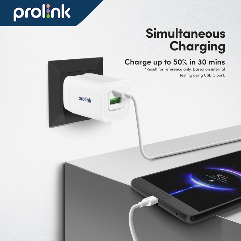 Prolink 33 Watt | 2 Port | GaN PD Kepala Charger | Wall Travel