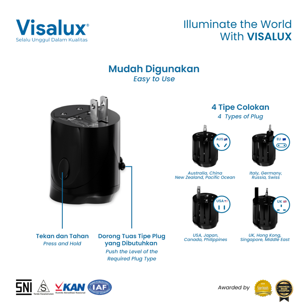 Visalux Travel Adaptor Kombinasi Universal Black - Colokan Internasional VKA8941
