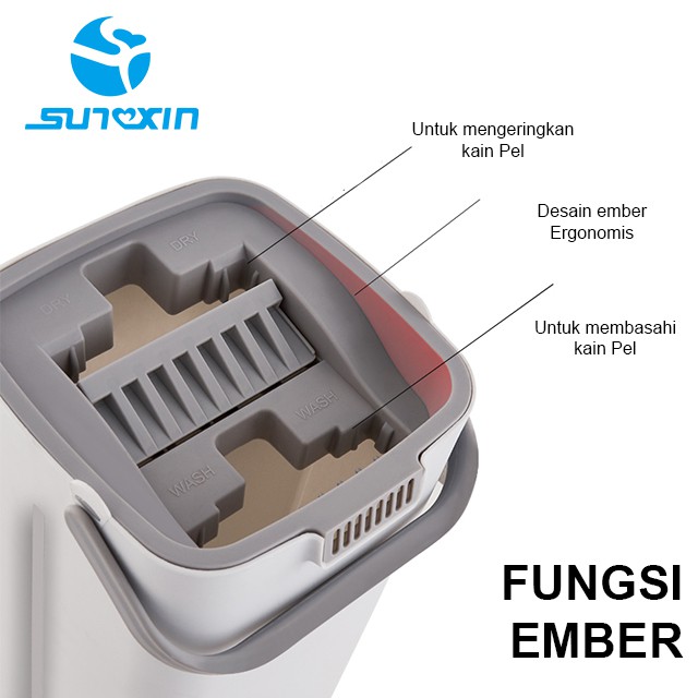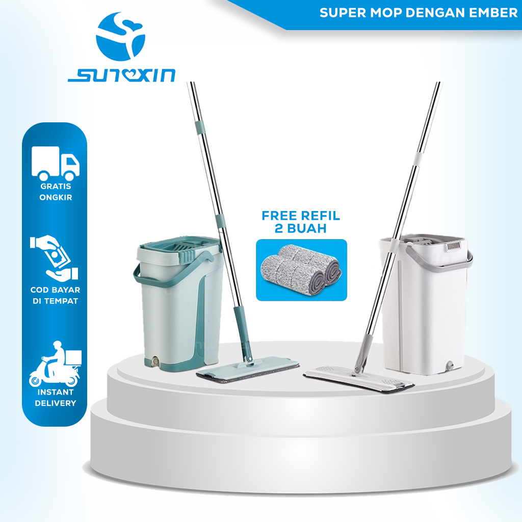 Sunxin - Alat Pel Lantai / Super Mop Dengan Ember Dapat 2 Kain Pel