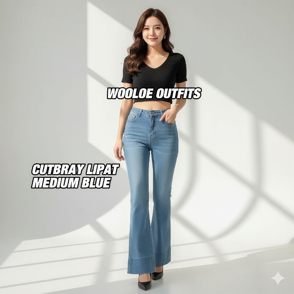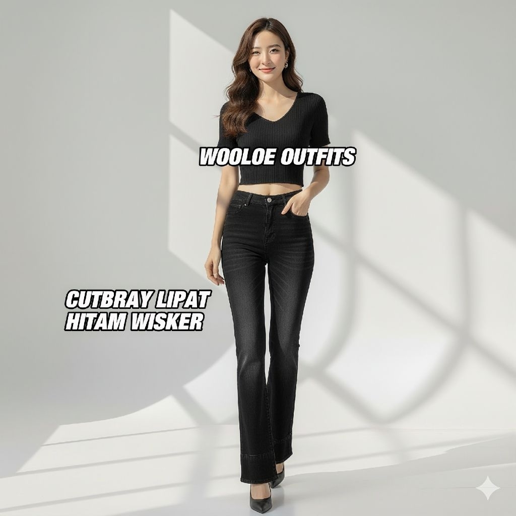 WOOLOE OUTFITS -Highwaist Jeans Stretch Cutbray lipat celana Highwaist wanita jeans cutbray premium high quality ori by