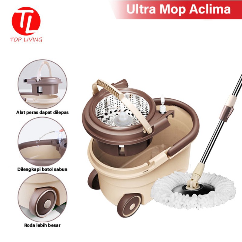 TOPLIVING Alat Pel Lantai Praktis Kain Pel Putar Otomatis - Ultra Mop Aclima