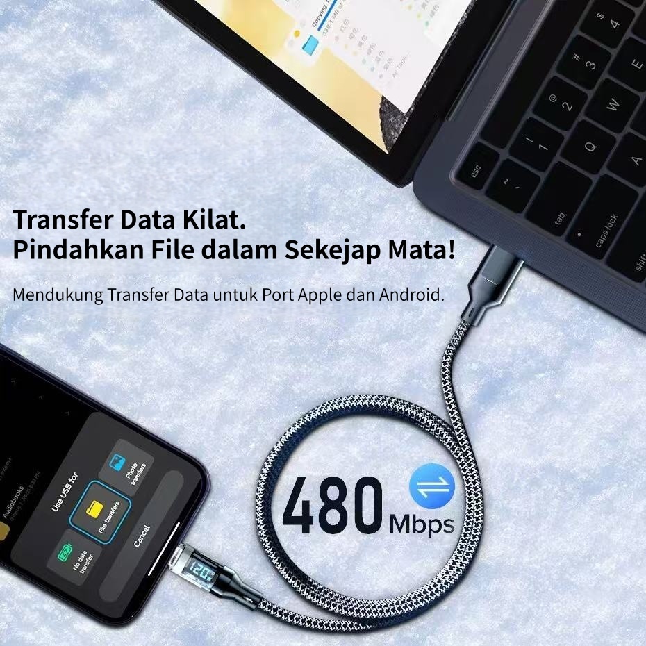 INKAC LED Kabel Data Tipe C Untuk Tipe C/Tipe C untuk Lightning 1.2M 60W PD Fast Charging LED Display