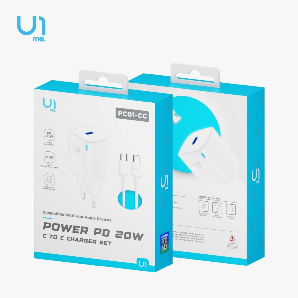 U1me. Power Charger Type-C Fast Charging 20W EU + Kabel Type-C to Type C Fast Charging 60W Braided 100cm New