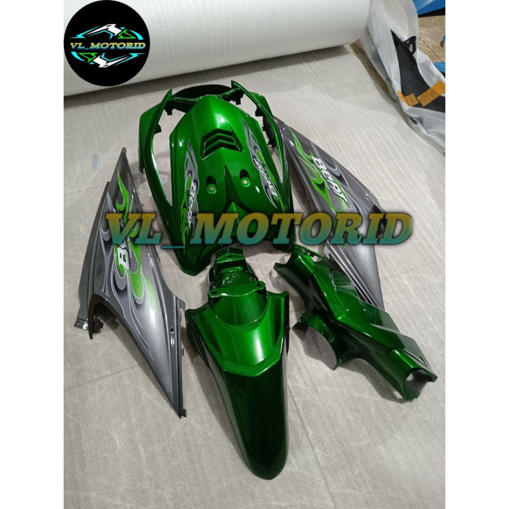 Cover full body halus honda beat karbu lama ijo candy mix greey plus list striping api transparan 2008-2012