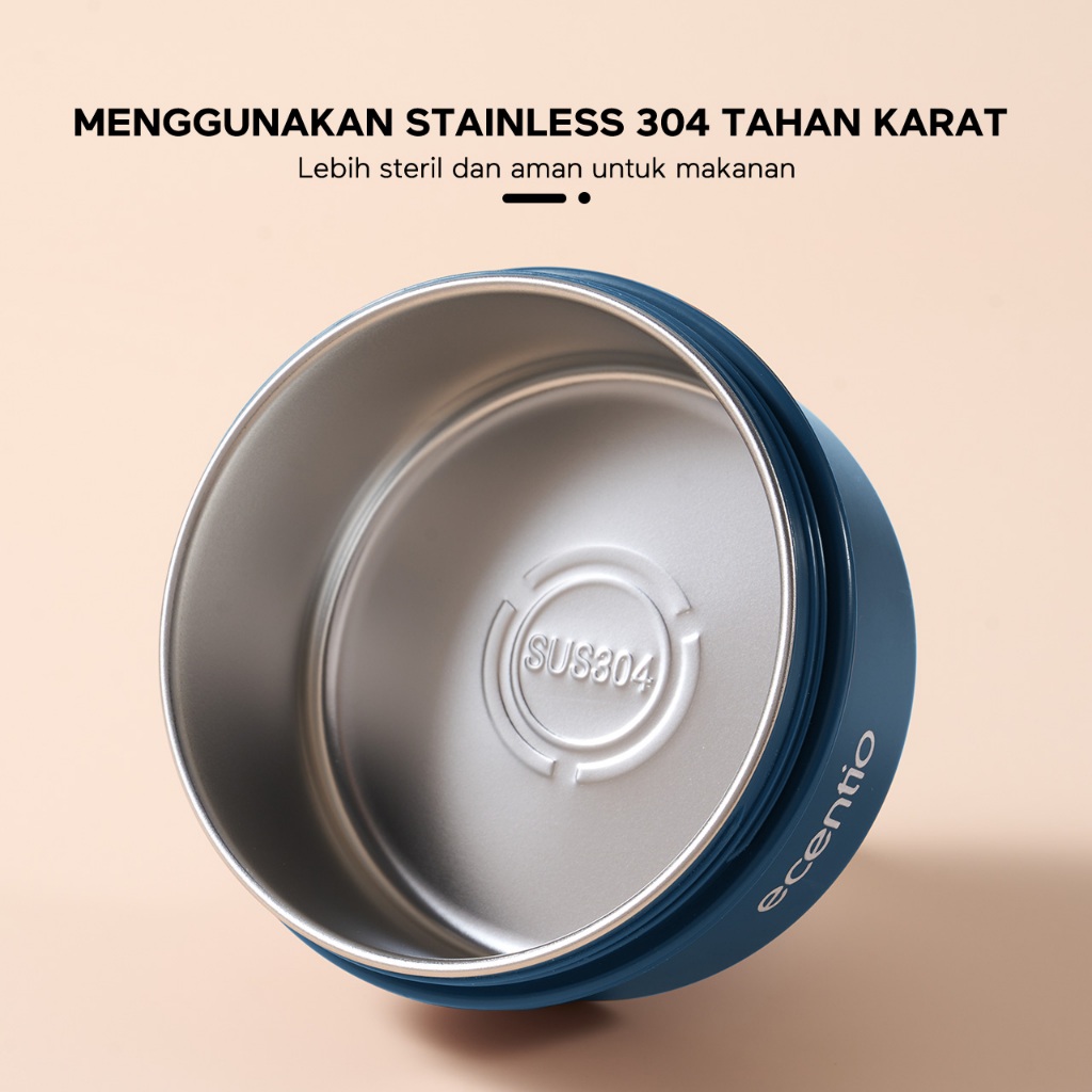 ecentio lunch box tas set 3pcs Biru Makan anti tumpah 304 Stainless Steel tas bekal dan free sendok Murah Gratis Ongkir