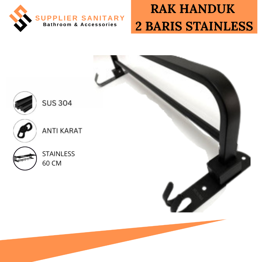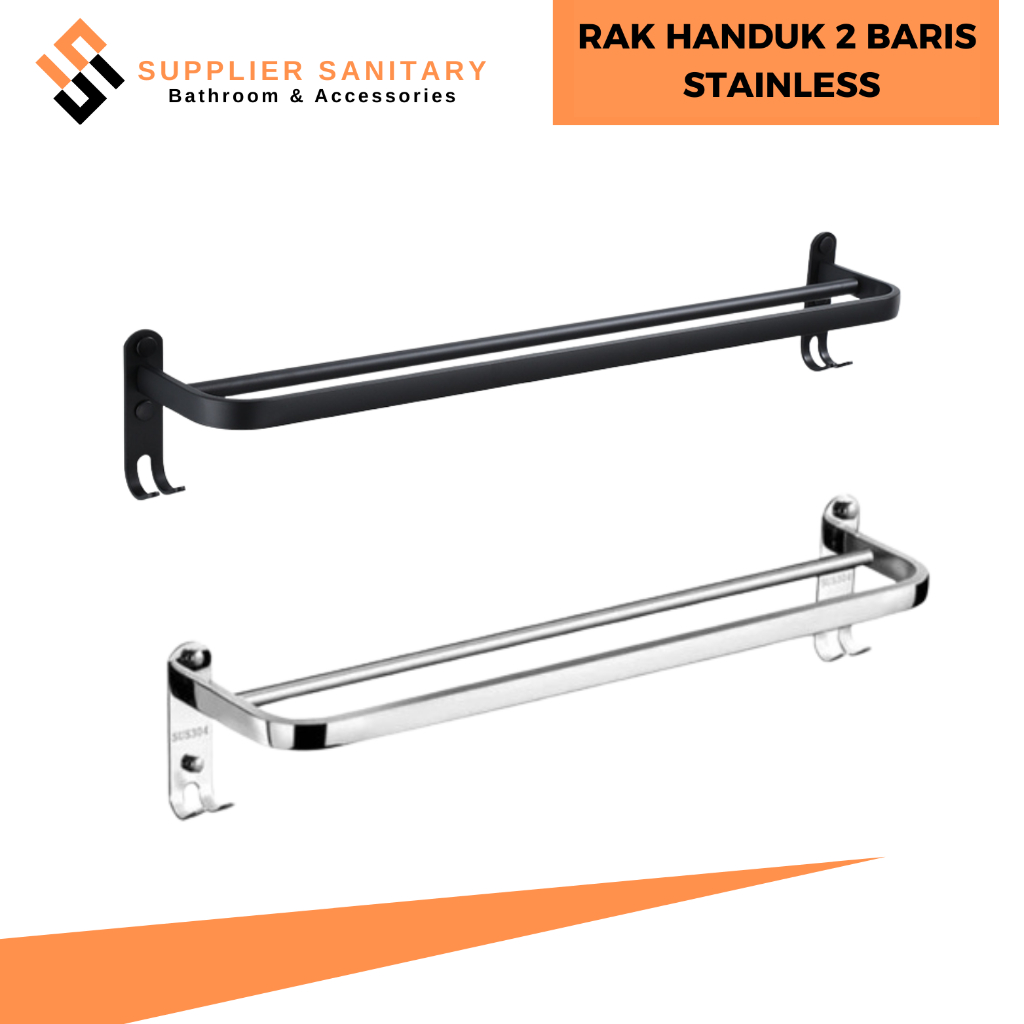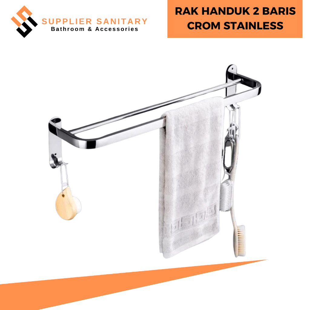 Rak handuk stenlies/rak kamar mandi/gantungan handuk 2 baris