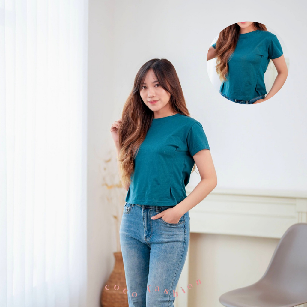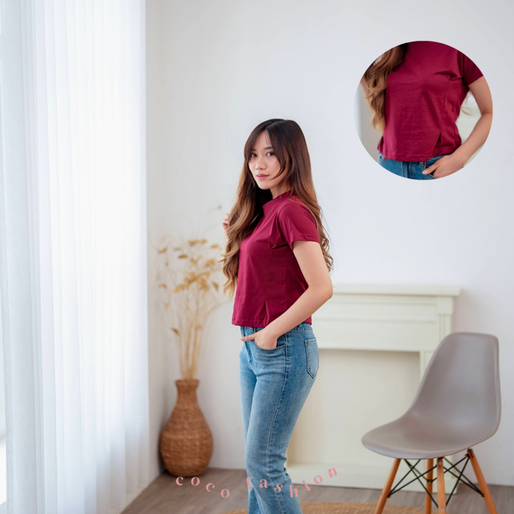 Atasan Wanita Kaos Lengan Pendek fitted shirt Style Samping Riana Top Cotton Combed Premium Size M L XL Basic Daily Outf