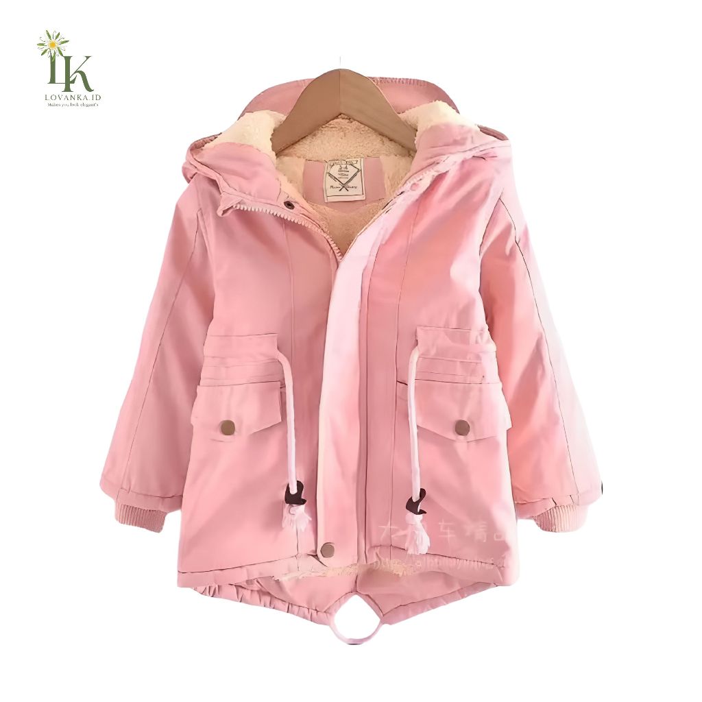 Lovanka Jaket Winter Anak Bulu Sherpa - Jaket Anak Perempuan Umur 2-12 Tahun Waterproof