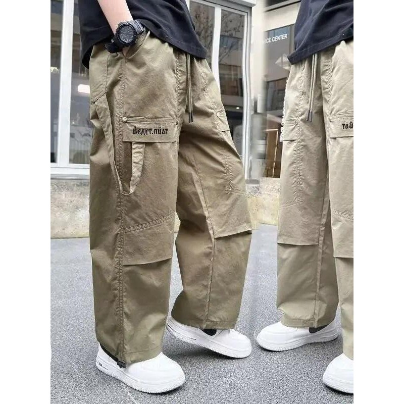 M Kids Celana Kargo Ukuran Besar Untuk Anak Laki-Laki Musim Semi Musim Gugur 2025 Celana Kasual Kaki Lurus Baru Celana Anak-Anak Trendi Dan Keren