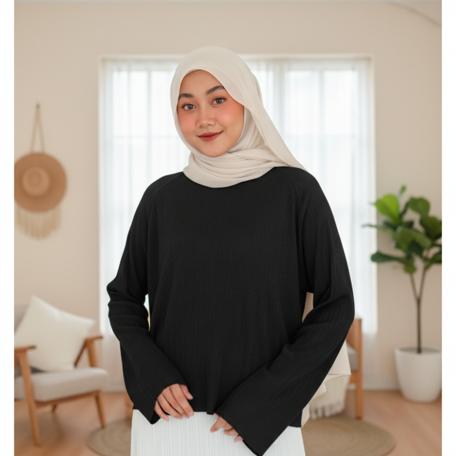 Camille Top / overlong sleeve / pleats top / knit top / plisket top Murah Gratis Ongkir