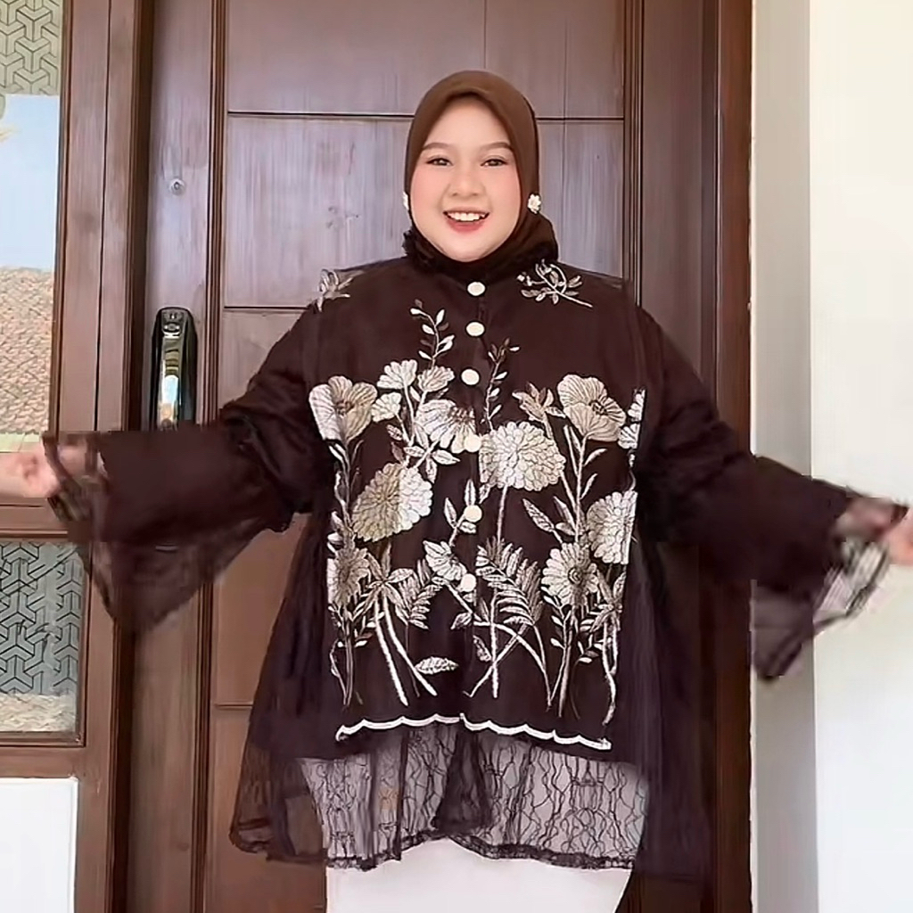 (BERFURING) Sierra LD 140 SUPER JUMBO Blouse Wanita Brokat Mewah | Atasan Bigsize Busui Friendly Kondangan untuk Lebaran by Eshantai