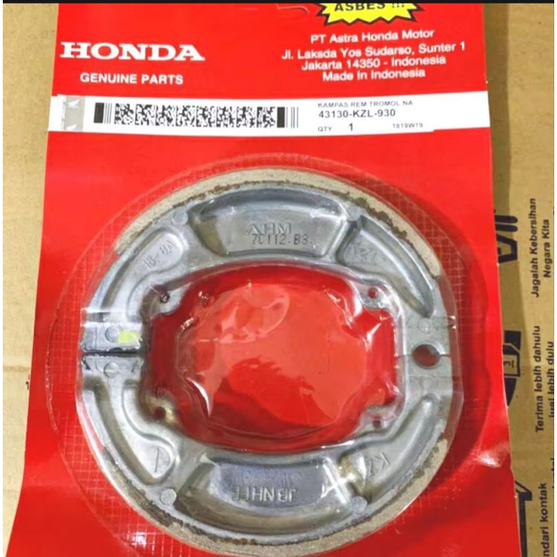 Kampas Rem Belakang Vario 125/150 Beat Spacy (4310-KZL-930) // Kampas Rem Tromol Beat, Vario,Spacy