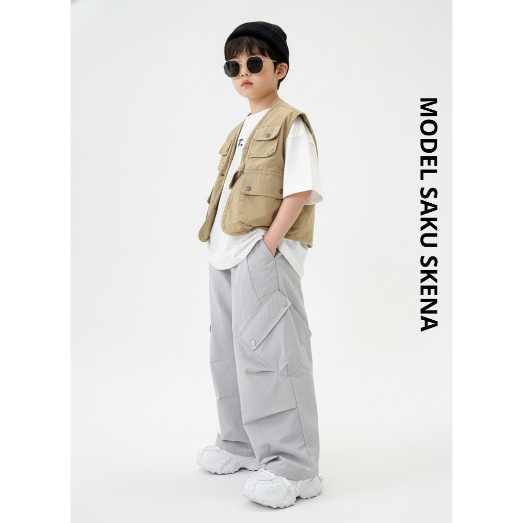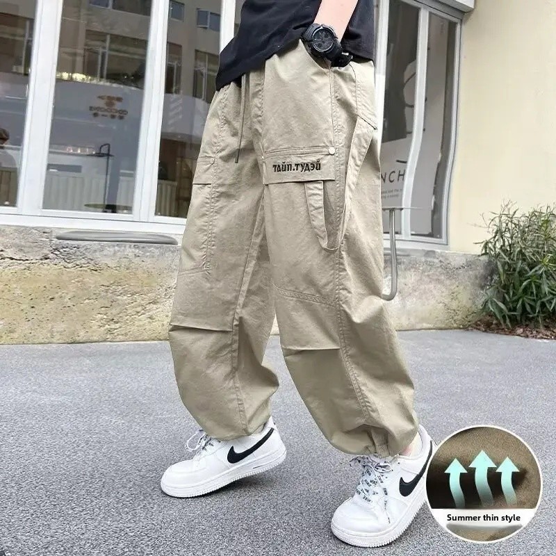 Celana Kargo Ukuran Besar Untuk Anak Laki-Laki Musim Semi Musim Gugur 2025 Celana Kasual Kaki Lurus Baru Celana Anak-Anak Trendi Dan Keren
