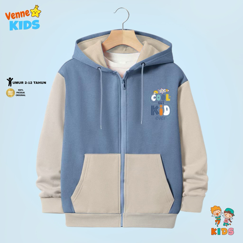 Pakaian Anak Keren Jaket Zipper Kombinasi Anak Laki-Laki Perempuan Usia 2-12Tahun Sablon Coolkids Bahan Fleece Premium By Venne Kids