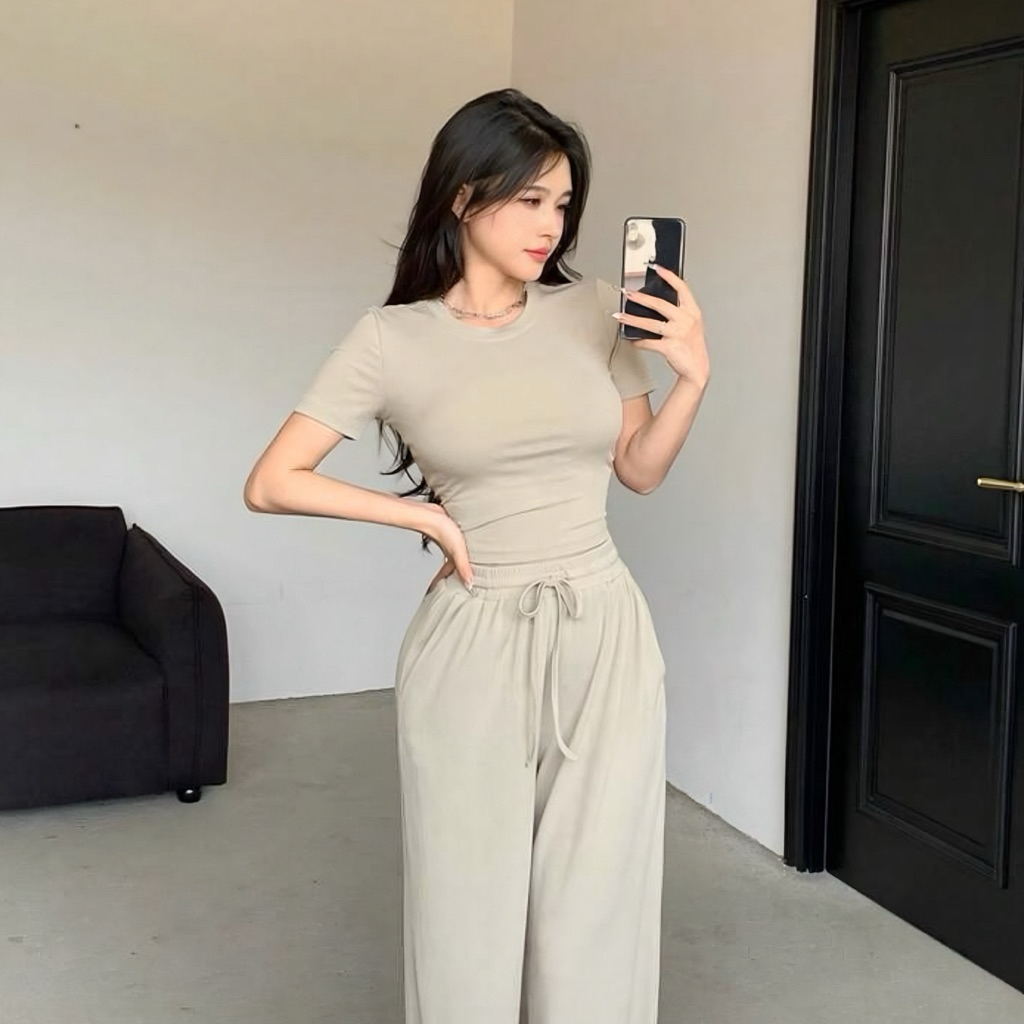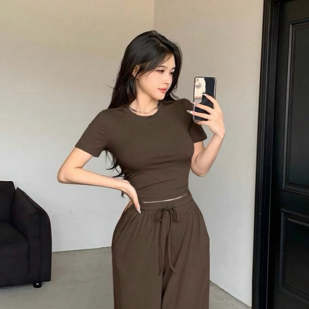 t-shirt crop slim stretch crop top tee gaya korea Murah Gratis Ongkir