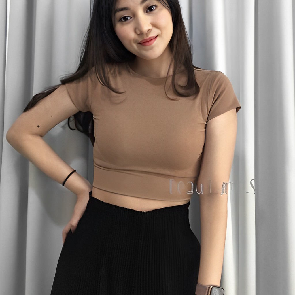GSC - Kaos Crop Top Turtle Neck Double Layer / Crop Top Wanita Polos Murah Gratis Ongkir