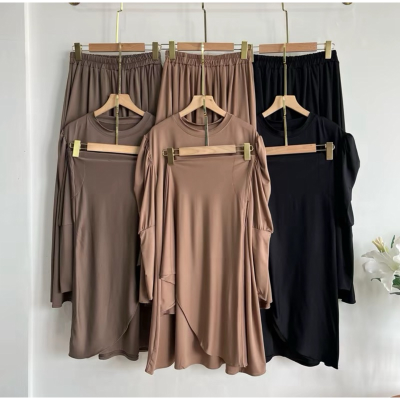 Navisya Set Rok Free Hijab Malay /Bahan Jersey Premium/Setelan Tunik Rok Free Hijab/Oneset Wanita Basic Santai Dan Kasual/Abaya Umroh Dewasa