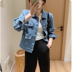 MISS EMITA Tweed Blazer Biru Wanita Korean Style er Pantai Lengan Panjang Jaket Crop Top Premium Formal Terbaru 2025 Kekinian Kondangan Simple Elegan