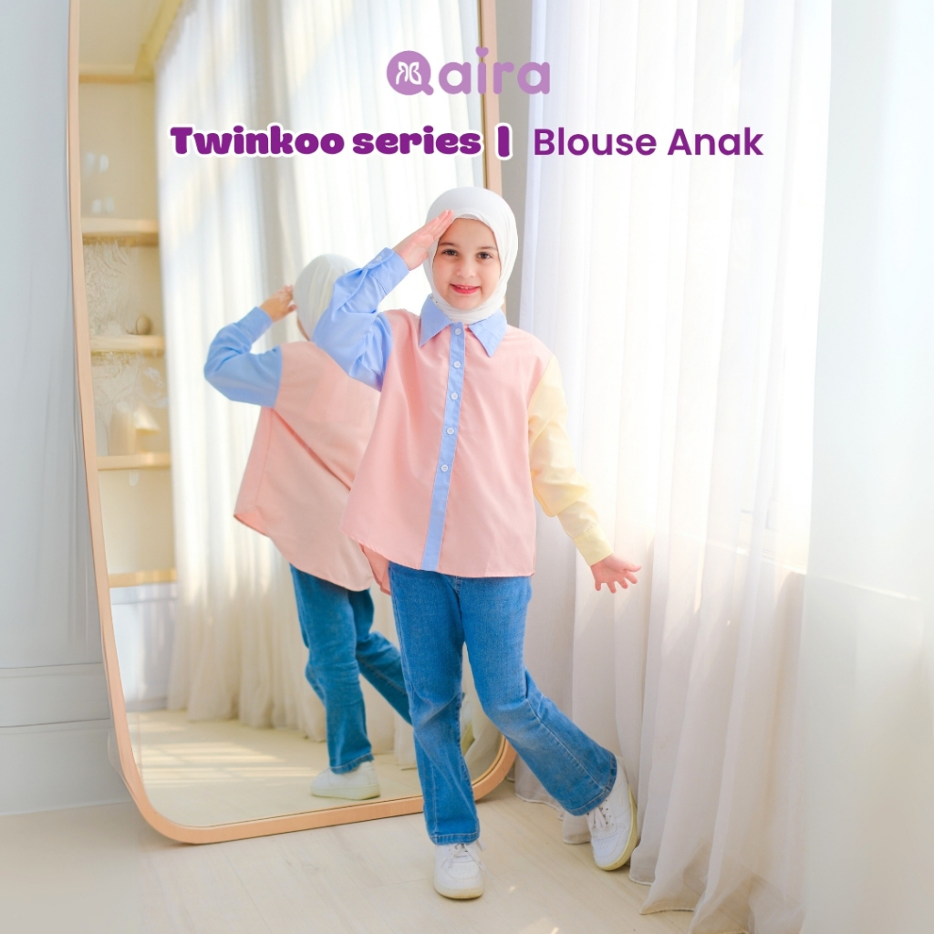 Qaira Kemeja Rainbow Anak Perempuan Blouse Polos Twinkoo Series