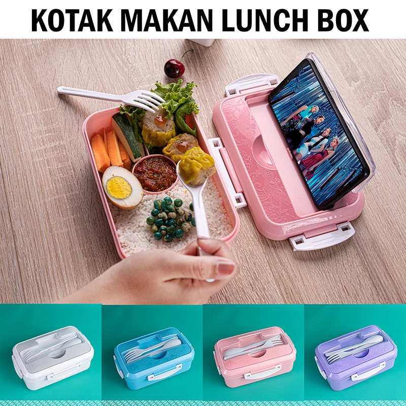 Lunch Box Kotak Bekal Sekat 3 Grids Tempat Makan dengan Sendok dan Garpu Wadah Makanan Rekreasi Murah Gratis Ongkir