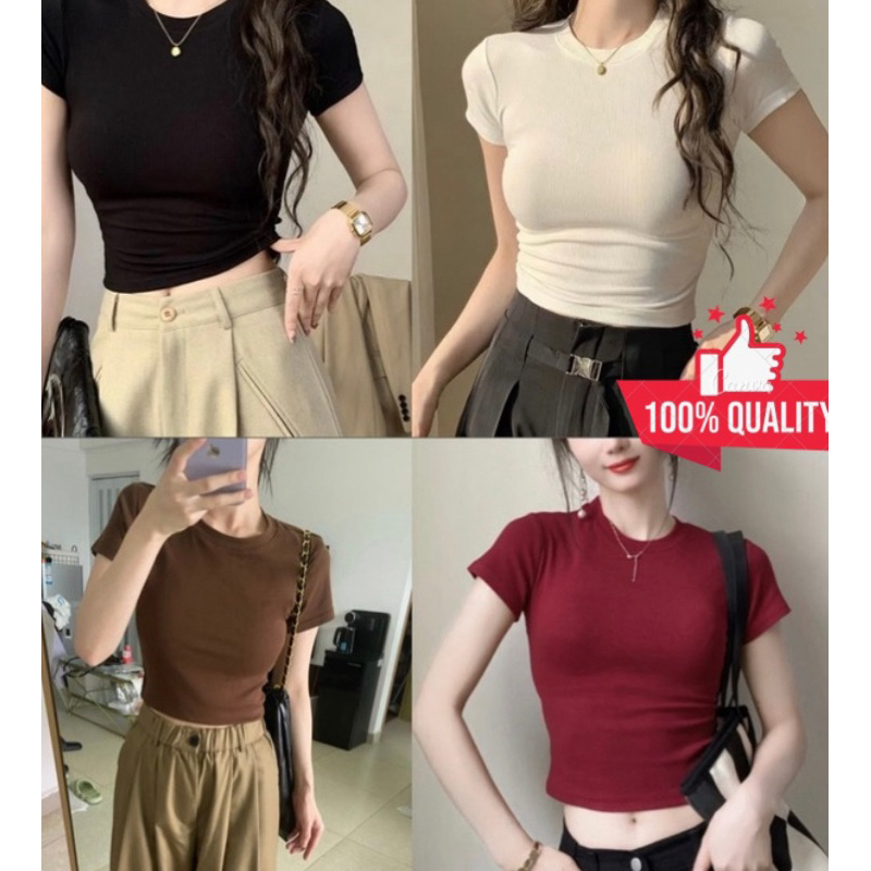 CROP KOREAN STYLE KAOS POLOS WANITA BASIC KNIT RIB BODYFIT Murah Gratis Ongkir