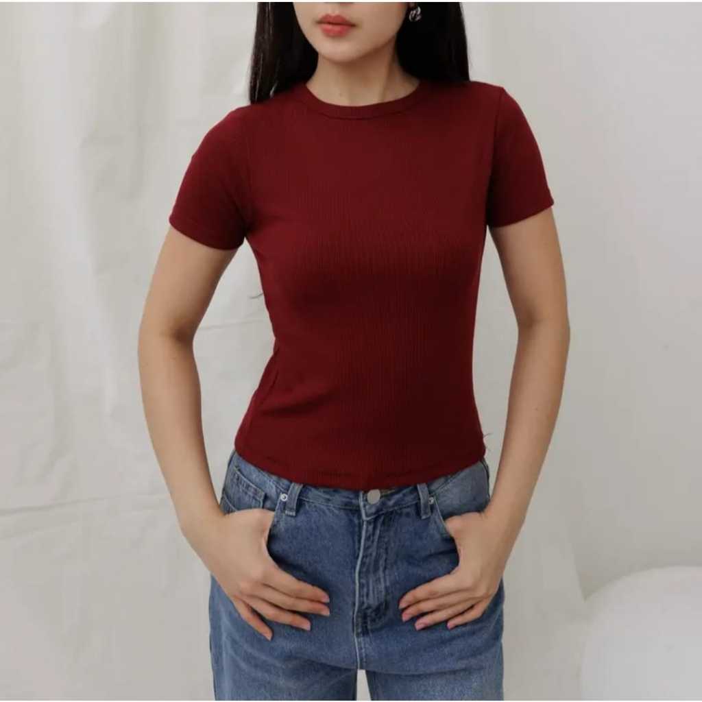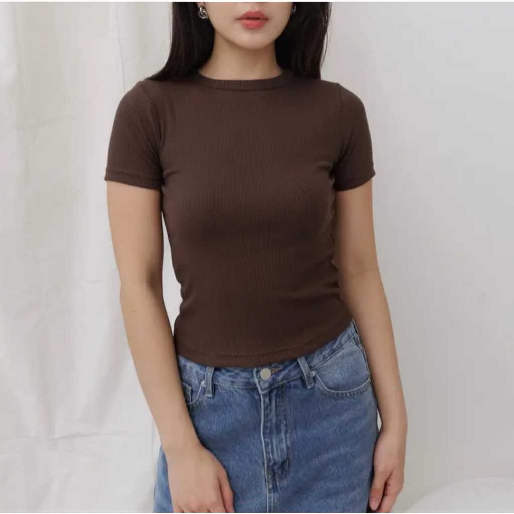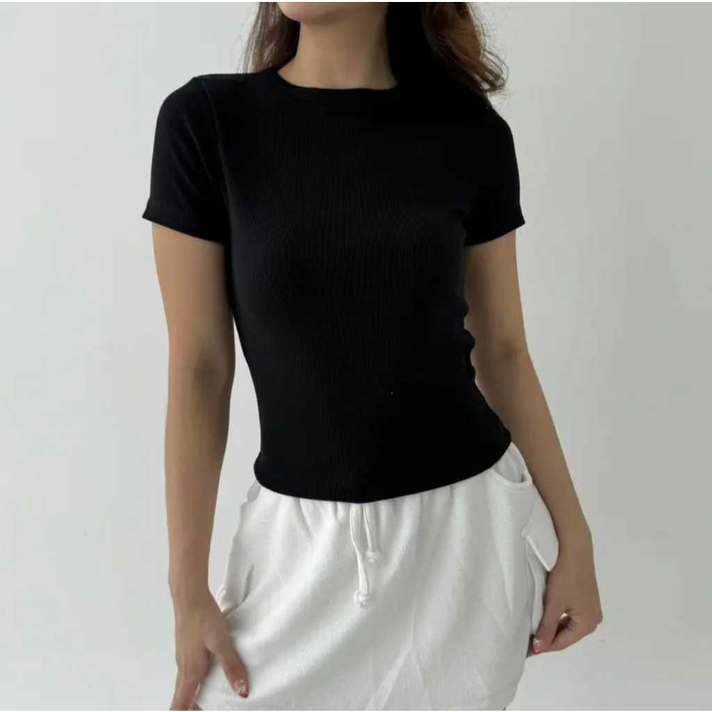 Kaos Knit Rib Wanita Lengan Pendek Atasan Wanita Kekinian Murah Gratis Ongkir