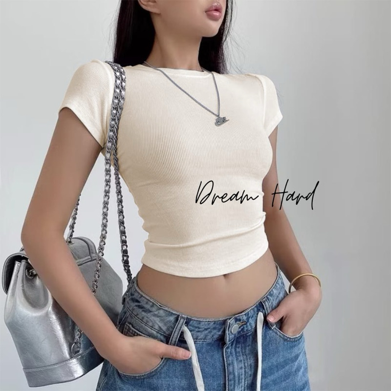 DREAM 07 Kaos Crop Wanita - Atasan Wanita Crop Bahan Rib Knit - Atasan Crop Wanita Korea - Baju Wanita Crop - Atasan Bas