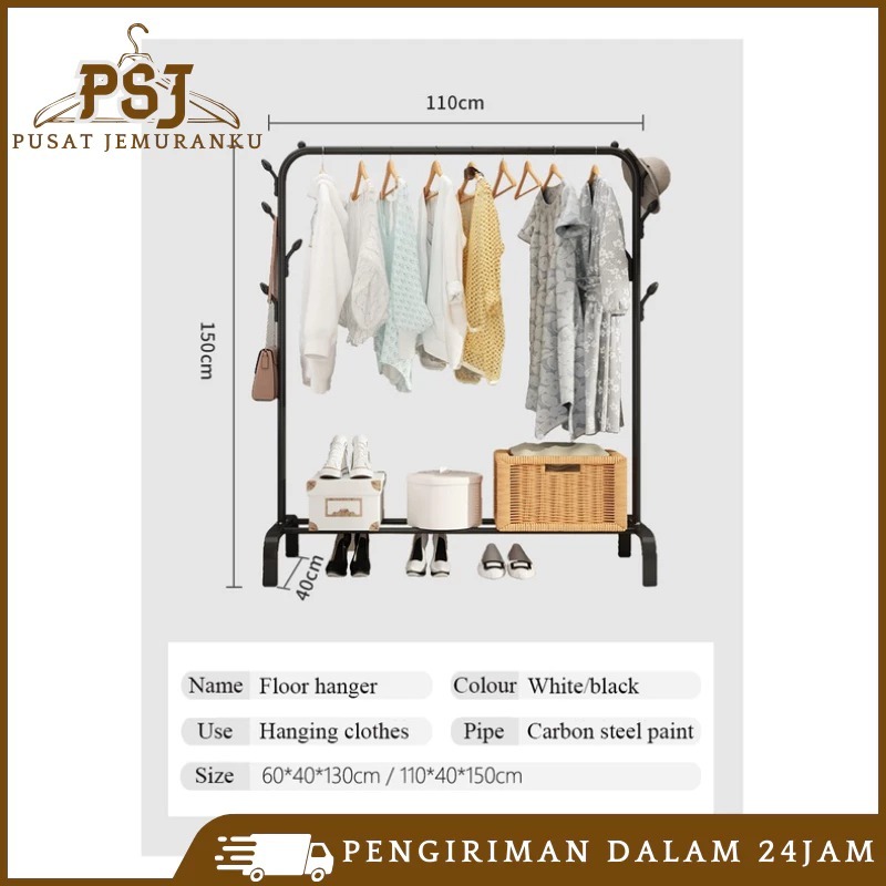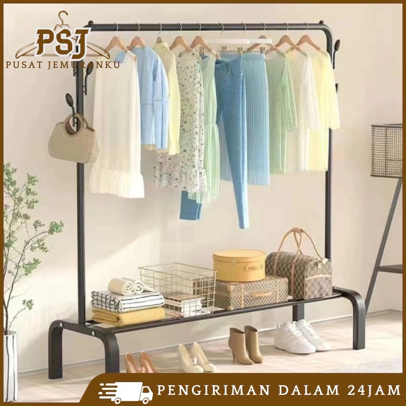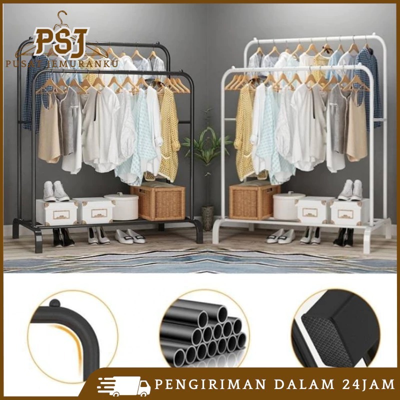 Stand Hanger Double Rak Gantungan Baju Berdiri Besi Kuat Rak Baju Gantung Minimalis 150cm