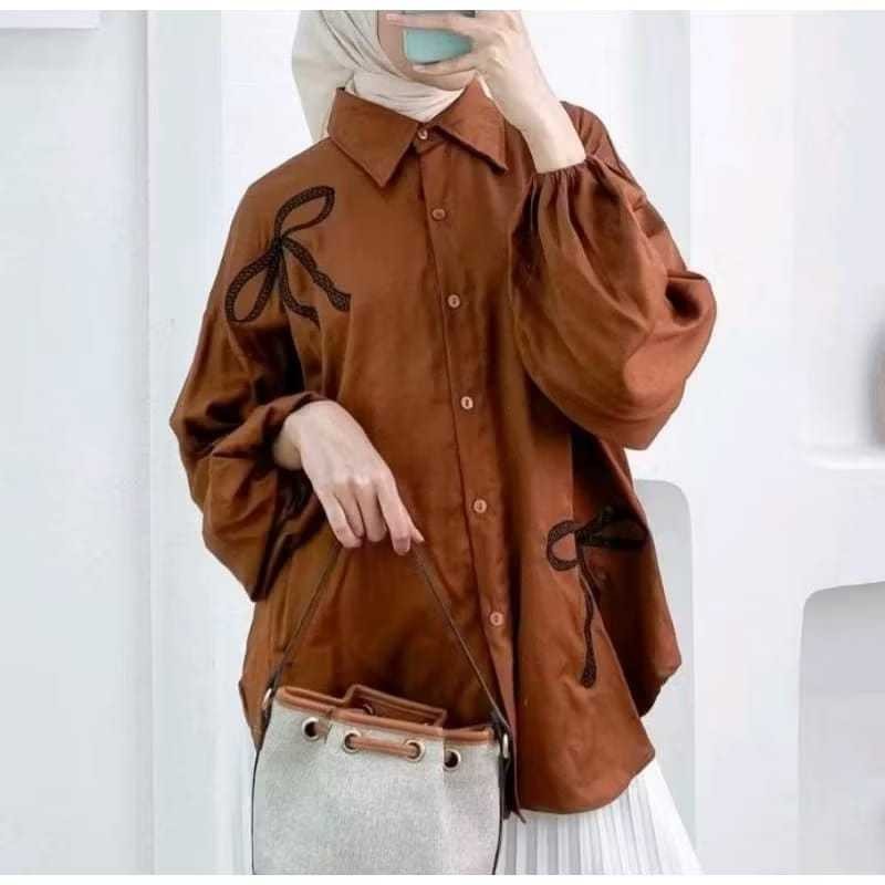 Atasan Blouse Big Bow Dinda Blouse Lengan Panjang Murah Gratis Ongkir