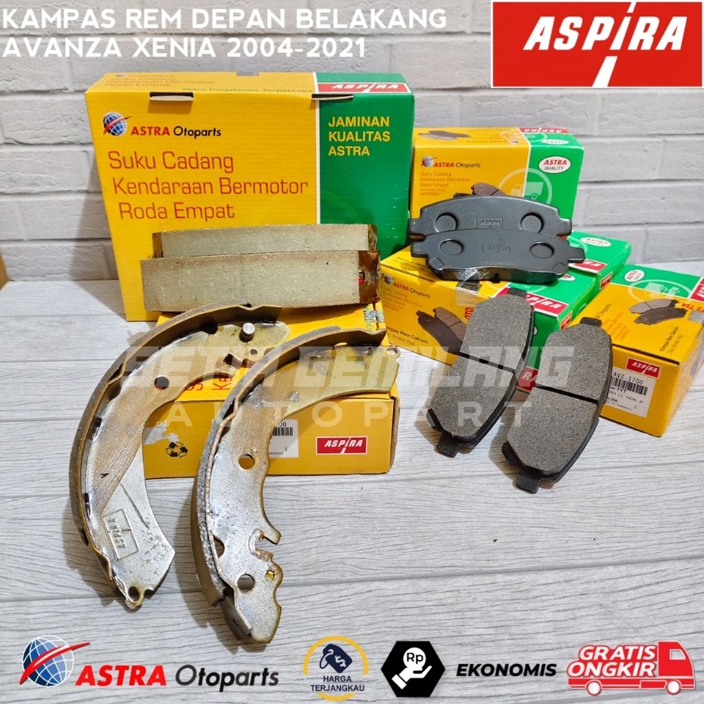 KAMPAS REM 1SET DEPAN BELAKANG AVANZA XENIA 2004-2021 ASPIRA BRAKE PAD BRAKE SHOE ASTRA OTOPARTS ORIGINAL