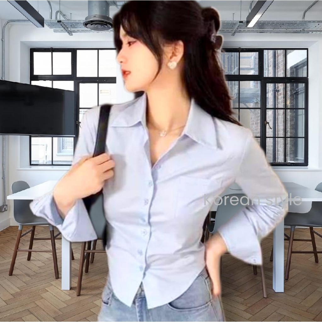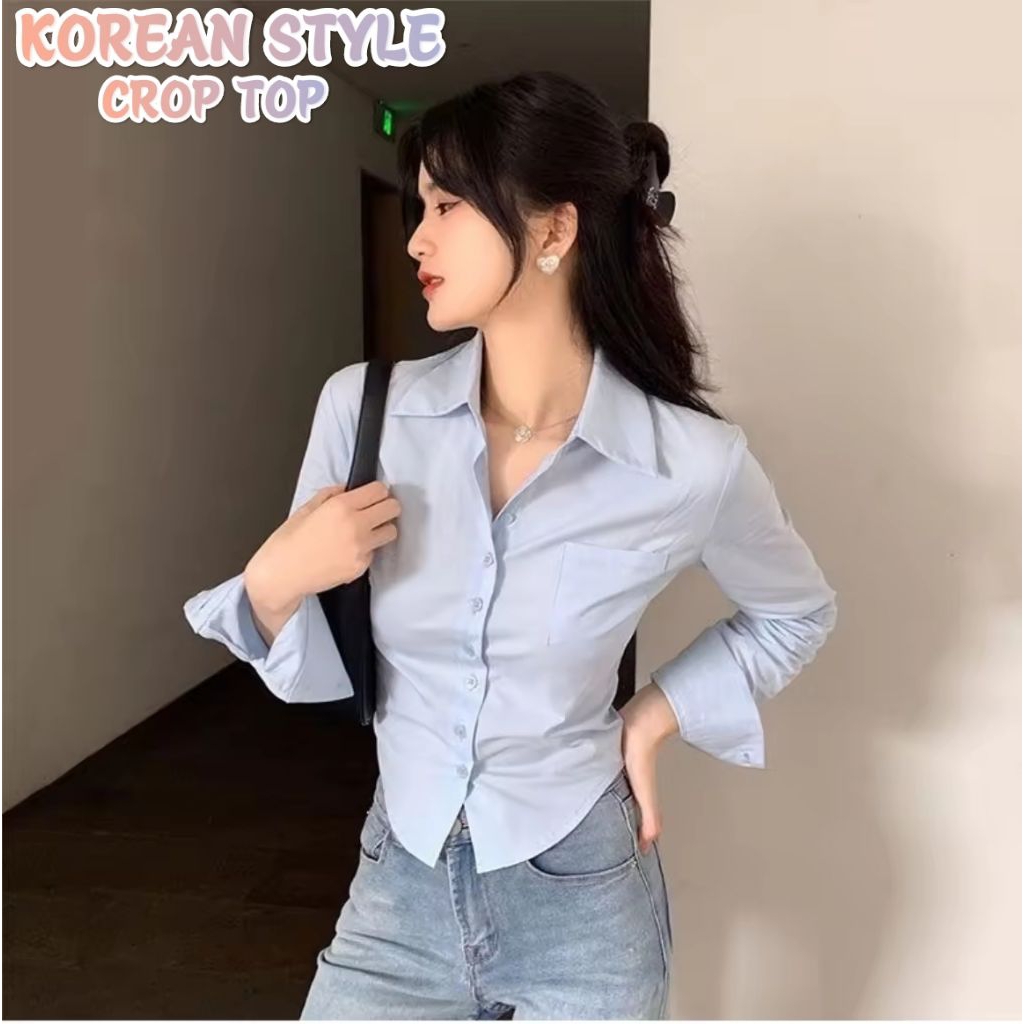Croptop Kemeja Wanita Slimfit Pres Body Korean Style Lengan Panjang Ukuran S M L XL XXL XXXL Murah Gratis Ongkir